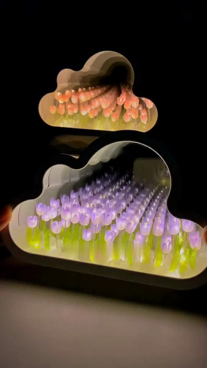 Inside the box, you’ll find one Infinite Tulip Mirror Set — everything you need to create your own dreamy glowing tulip display. (Note: Button batteries are not included.)